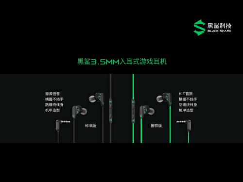 黑鲨3.5mm入耳式游戏耳机分为“普通”与“圈铁”两个版本,材质由锌合金打造,搭配黑鲨主配色面条线材,让耳机更加醒目、个性更加张扬。接头处则采用了3.5mm弯头设计,业界最小间隙可让玩家放心横握,游戏时不在挡手。“圈铁版”采用混合12.5mm动圈+楼氏动铁设计,可精准分频,让低音更深邃,高音更清脆。售价方面“普通”版本价格为XXX元,“圈铁”版本价格为XXX元。