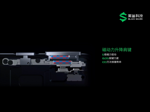 黑鲨4全系搭载磁动力升降肩键,基于前代肩键工艺升级打造的全新磁动力升降肩键方案,保持了双机械实体肩键操控,升降方式采用了无接触的磁动力驱动方案,通过磁铁实现肩键的自动升降,并在按键收回后与外形浑然一体,完全不影响手机外观以及日常使用。