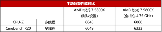媒体实测数据显示,该主板搭配AMD锐龙7 5800X在1.26875V核心峰值电压设置下,全核心可以稳定超频到4.75 GHz,且多线程性能明显提升,这在很多吃多线程性能的游戏与渲染输出类应用中都会获得更好的体验。