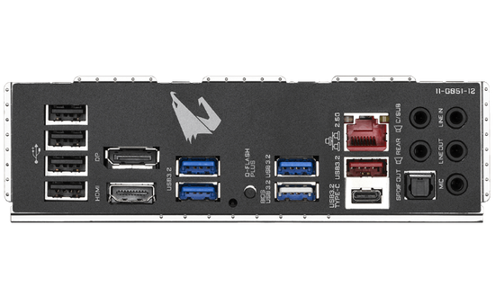 背部IO接口方面,技嘉小雕PRO-P B550M为玩家提供4个USB 2.0接口、1个DP接口、1个HDMI接口、4个USB 3.2 Gen 1接口、1个USB 3.2 Type-C™接口、1个USB 3.2 Gen 2 Type-A接口(红色),1个RJ-45 2.5千兆网线接口和5个音频接口等,无论是入门用户还是高阶发烧友用户,该主板均能满足使用需求。