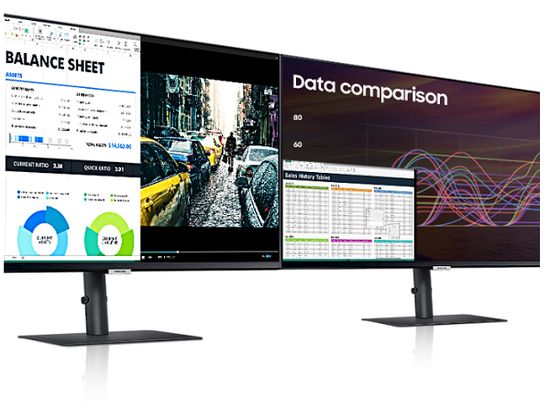 与S8相同,S7系列也提供27英寸和32英寸尺寸的超高清分辨率,拥有超薄支架,178度宽视角面板和鲜明的色域。方便的倾斜功能,几乎无边界的设计使用户能够专注于自己的工作。