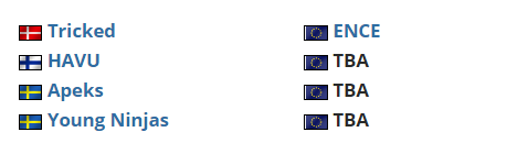 四支Elisa北欧冠军杯晋级队伍和四支邀请队伍将在即将到来的Elisa邀请赛2021春季赛中争夺。通过北欧冠军杯晋级的队伍分别是来自丹麦的Tricked,来自芬兰的HAVU,来自挪威的Apeks以及来自瑞典的Young Ninjas。而被邀请的队伍现在只宣布了ENCE。