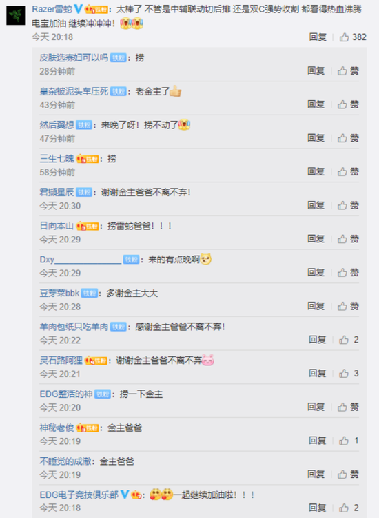 更值得一提的是,在这一场关键比赛中,EDG战队还携手LPL新赞助商雷蛇开启季后赛线上应援活动。在淀粉们的加油助威下,EDG成功实现了昔日许下“把自己输的找回来”的豪言。
