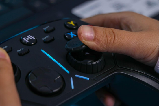 传统的灵敏度设置需要打开设置-调数值-返回游戏测试,调到一个舒服的灵敏度通常都需要花费超长时间;而北通阿修罗3游戏手柄创新性的在摇杆上添加灵敏度转盘机制,无需在游戏内设置即可实时调整灵敏度,在《幽灵行者》关卡内就可以通过实际游玩实时调整测试灵敏度,一下子就能调到自己最舒服的数值,最大程度上避免了3D眩晕带来的不适感,甚至劝退感。