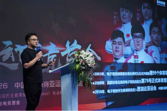 元知教育科技有限公司副总裁于晓东对国家政策向职业教育倾斜、培养电竞产业应用型技能人才和创新型人才进行深入分析。于晓东在致辞中提出,通过与超竞教育的强强联合,充分发挥双方在人工智能和电子竞技领域的优势,实现产业和人才的同频共振,共同打造新时代中国职业教育的新高地。