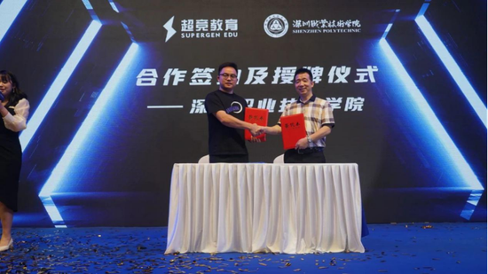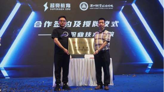 本次发布会上,超竞电竞创意培训中心-深圳校区正式启动,深圳职业技术学院与超竞教育合作签约并对校区进行“实习基地”授牌,元知教育科技有限公司与超竞教育合作签约并对校区进行“联合人才培养基地”授牌。四方代表就院校电竞专业建设、产学研用推动产教融合、共同打造校外电竞人才培养基地标杆等话题进行交流,并在发布会现场完成合作签约和授牌仪式。