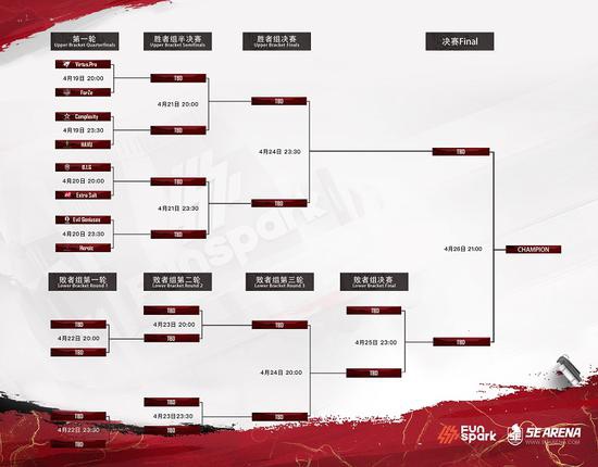 比赛赛制:八支队伍两两对阵,将进行BO3双败淘汰赛,决赛为BO5。