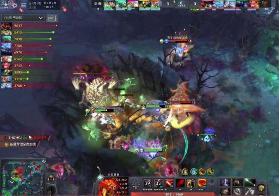 25分钟夜魇在天辉二塔旁动手,帕克先手大住三人,电炎绝手小强全能接连倒下,小强选择买活,但交出了技能的夜魇对两条命的骷髅王与开了大的DP好像有些力竭,一番拉扯之后幽鬼末日冰女阵亡,但骷髅王也最终倒下。