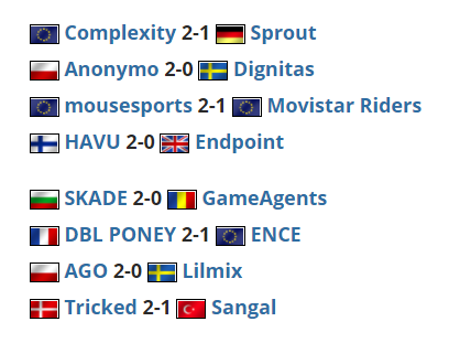 ENCE成为本轮赛事TOP30参赛队中唯一的翻车者。剩余两支TOP30队伍SKADE和AGO分别击败了GameAgents和Lilmix后得以进入下一轮。