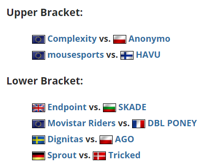 在胜者组中,最令人大跌眼镜的是Anonymo对Dignitas 的完胜(本场比赛,Anonymo队员KEi的rating达到了1.52)。HAVU轻取Endpoint,在整轮较量中只丢了10个小分。Complexity以2-1战胜顽强抵抗的Sprout,其中k0nfig的rating达到了恐怖的1.66。当天的最后一场比赛则是mousesports2-1战胜了Movistar Riders。而在本周三,这两支队伍将在IEM SUMMER的封闭式预选赛中再度碰面。