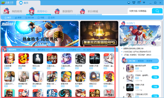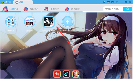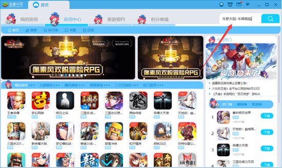 方法2:进入“应用中心”首页,通过推荐游戏,也可找到《斗罗大陆-斗神再临》。