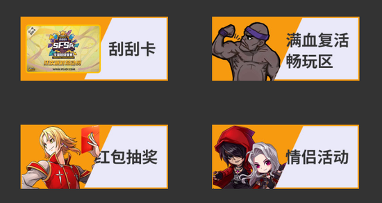 所有到线下赛区的参赛者在自己的比赛结束后,都可以在畅玩区进行免费的上机。在畅玩区会随机出现福利邀请战,首轮被淘汰的玩家队伍都可以报名(找现场工作人员报名),一次只接受两组对战,胜出的队伍每人可以获得刮刮卡一张,数量有限,先到先得。