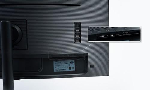 S65UA显示器背面下部凹槽,配有4个额外接口(包括HDMI, DP, Type-C, LAN)。