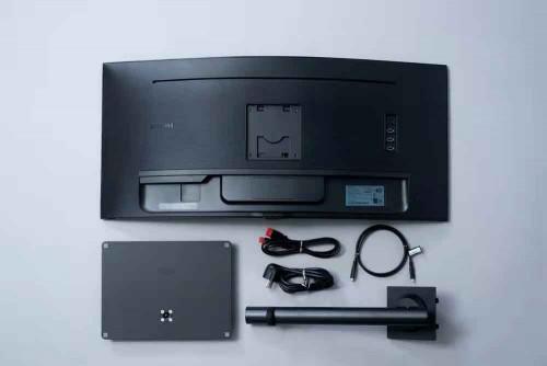 显示器的安装也十分便捷。S65UA显示器配有支架底座、支架颈、电源线、HDMI线和USD Type-C线,两步即可完成安装。