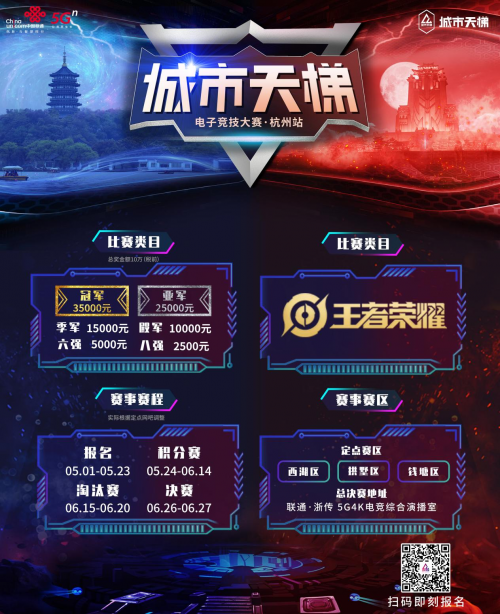 目前,“2021城市天梯电子竞技大赛·浙江赛区杭州站”招募活动已正式启动,线上报名通道限时开启,招募截止至2021年5月23日24时。通过筛选的报名参赛战队届时将通过短信方式通知后续赛事信息。