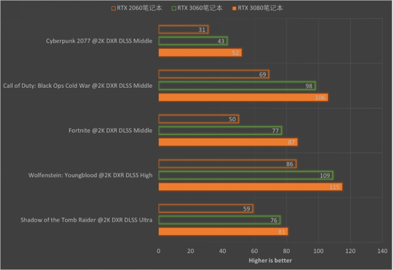 可以这么说,以GeForce RTX 3080 笔记本电脑GPU为代表的RTX 30系列笔记本电脑GPU给笔记本游戏体验带来了全面的提升。在富余的性能供给下,笔记本OEM厂商们也大胆用上了2K分辨率、高刷新屏幕,让玩家获得了更多的游戏沉浸感。