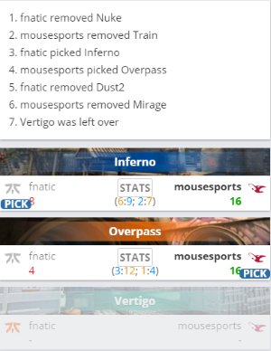 Mouz 2-0 fnaitc(Inferno 16-8;Overpass 16-4;Vertigo)