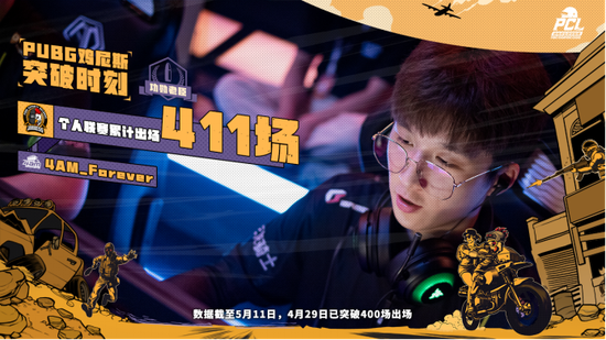 随着第五周周中赛第二日的比赛的结束,来自4AM战队的Forever也正式在PCL联赛达成411场的登场次数。从青训出道到PGC世界赛战神,再到2020PCL秋季赛冠军,Forever选手一直都在努力。期待他在季后赛上愈战愈勇,再创佳绩!