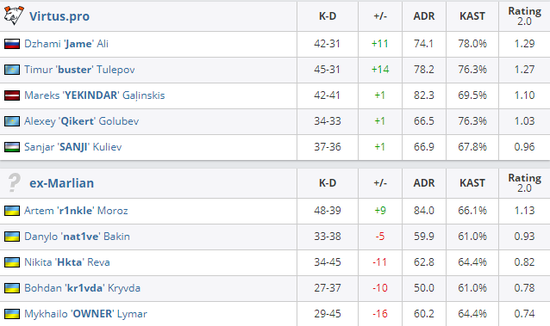 Virtus.pro 2-0 ex-Marlian(Dust2 16-14;Mirage 16-13)