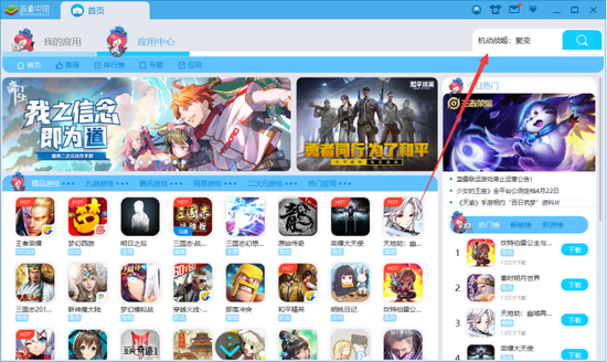 方法2:进入“应用中心”首页,通过推荐游戏,也可找到《机动战姬:聚变》。