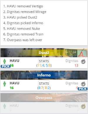 HAVU 2-0 DIgnitas(Dust2 16-13;Inferno 16-9;Overpass)