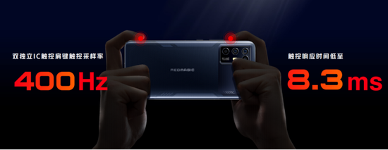腾讯红魔游戏手机6R即使采用轻量化旗舰外观,在游戏操控性方面也没有丝毫妥协,搭载触控采样率高达400Hz的双IC触控游戏肩键,轻松实现一键换装、一键连招等高端操作,同时避免手指遮挡屏幕,解放屏幕视野!400Hz的超高触控采样率,令这两颗肩键的操控响应更加及时稳定,触控响应时间低至8.3ms!无论专业玩家亦或是新手小白,都能在其身上感受到得心应手、痛快酣畅的操作体验。