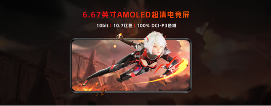 为提升玩家在游戏过程中的视觉流畅度和反应速度,腾讯红魔6R搭载一块6.67英寸的144Hz高刷电竞屏,及时作出反应;屏幕支持4档手自一体化的帧率调节,平滑过渡,帧率设置再也不用操心;360Hz多指屏幕触控采样率,响应速度极为敏捷,指哪儿打哪儿,毫无延迟感。此外这块屏幕还具有10.7亿色彩,支持100%DCI-P3色域,色彩显示细腻丰富,并支持DC调光功能及SGS低蓝光护眼认证、SGS高刷低拖影认证,长时间游戏健康护眼。