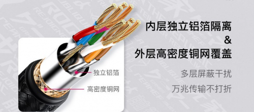 ROG ZOOM电竞网线,采用八股99.99%的无氧纯铜线芯,本身具备超低阻抗,保障高质量传输 ;内层独立铝箔隔离&外层高密度屏蔽层覆盖,内外多重屏蔽抗干扰,万兆疾速不打折;打造整体八芯双铰线,内外双修,拒绝延迟卡顿,让你在激战中处处先人一步。