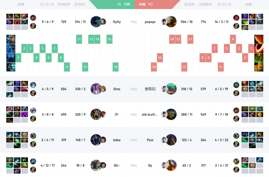 VG选择了小组赛最稳的核心剑圣,IG又拿到了己方擅长的英雄,从双发的阵容来看VG的赢面似乎大一点。3分钟下路VG的狼人与小Y被IG的TB活活A死,短短5分钟诞生了5个人头,这场比赛有的看了。
