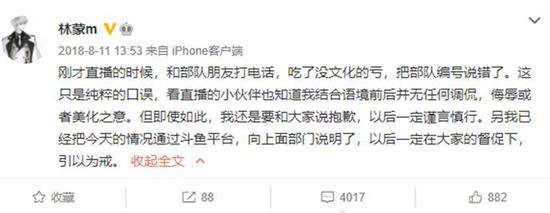傲慢:最后也是最严重的,目无国法狂傲自大,曾经在直播中口嗨自己有兄弟在731部队当营长。大家都知道731部队在侵华战争中犯下滔天罪行,同时也是与南京大屠杀齐名的国耻,各大官媒每年都会批判,意在让人不忘国耻。但是林蒙竟然拿此事在直播的时候吹牛,称731营长是自己兄弟。此言论一出,网友全部都怒了,直接举报。后续他直播间被封,微博道歉自己没有文化,但是这些都不是你口嗨的理由!