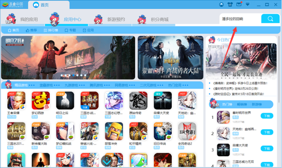 方法2:进入“应用中心”首页,通过推荐游戏,也可找到《潘多拉的回响》。