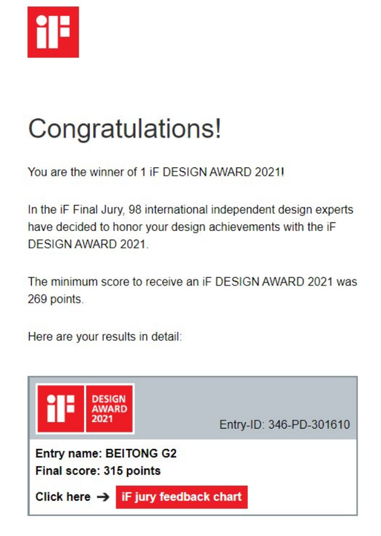 本次北通G2游戏手柄荣获“2021年德国IF设计奖”便是见证成长的最有力证据之一。作为国际最具影响力之一的设计类大奖,德国IF设计奖素有“产品设计界的奥斯卡奖”之称,这一点从经年参与角逐的品牌中便不难看出:奔驰、三星、索尼等在设计领域获得盛赞的国际巨头每年亦为IF奖项角逐劳心劳力。