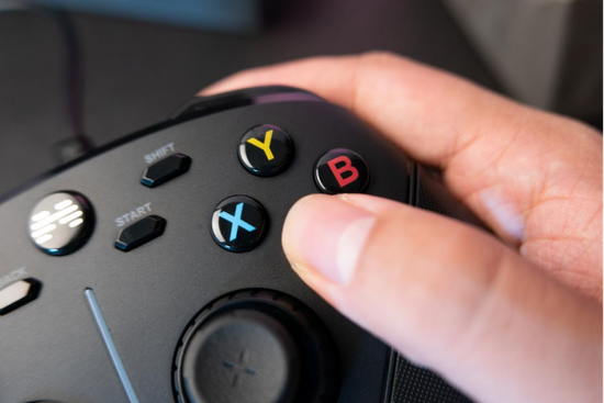 在ABXY四个按键方面,作为北通游戏手柄系列的高端型号,阿修罗3有线版也采用了北通宙斯精英手柄同级机械按键,仅0.7mm触发行程触发更快回弹干净利落,触发行程比传统按键缩短35%,需要出招的时候先拔头筹,赢得先机。