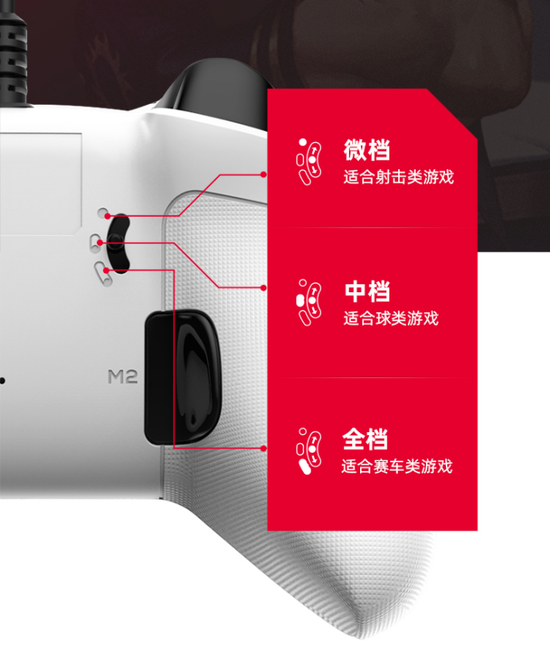 大家都知道玩RPG、射击游戏时短行程的扳机更有优势,而赛车游戏的时候线性扳机键又能模拟油门的线性效果,而北通阿修罗3游戏手柄有线版的三段式扳机能自由控制扳机键程,轻松驾驭不同类型的游戏体验。