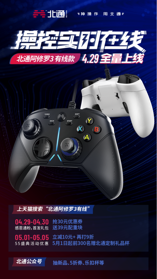 北通阿修罗系列手柄的新成员——北通阿修罗3有线版于4月29日全量上线,