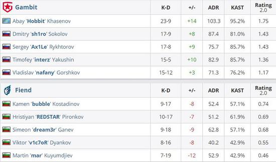 先作为进攻方的Fiend在输掉手枪局后完成强起翻盘打空Gambit的经济,随后在长枪局中依靠几波成功的B区进攻打了Gambit一个措手不及,Fiend直接以4-2取得领先。随后Gambit赌B防守取得成效,完成半起翻盘,瞬间起势的Gambit依靠Ax1Le刚猛十足的A大防守与稳定的回防残局连续拿分,得分节奏被断的Fiend一时之间显得有些迷茫,B区一波已经不再对Gambit起效,Gambit完全将比赛拖入属于他们的节奏,直接用枪法说话,Gambit在对手取得领先以来的十五个回合里赢下十四局,最终以16-5的比分将比赛结束。