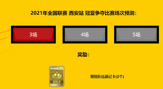 除了微博活动之外,玩家们还可以参与专题上的地区赛预测活动预测西安站以及天津站决赛场次赢取奖励,预测成功次数满足一定条件将额外获得奖励。