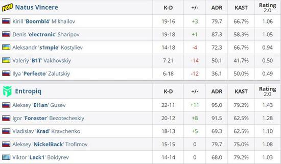 El1an铁板顶住压力击杀两人下半场手枪局NaVi放空A区赌铁板防守,Entropiq则一波内场下管,5v5回防一触即发,Forester摸到后路收下三杀,Entropiq一举将比分差距再次拉开。NaVi在长枪局中重新找回些许节奏,但过大的分差不容得他们有一点失误,最终Entropiq依靠一波成功的3v3守包残局结束比赛。