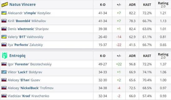 s1mple!!!攻防转换后NaVi在进攻方显得更加得心应手,赢下手枪局的他们一举将比分反超并且Boombl4的状态也在渐渐回暖,同时也是依靠Boombl4的觉醒四杀直接拿到赛点。率先取得赛点的NaVi明显有些急躁,在进攻节奏上出现巨大问题,Entropiq的大胆摸点直接将NaVi的主攻方向摸得是一清二楚,Entropiq最终还是将比赛成功拖入加时。加时赛NaVi仅仅依靠我们的超人s1mple的强行carry拿下两分,Entropiq仍然是更胜一筹以19-17赢下比赛。