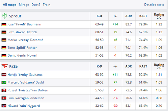 Sprout 2-1 FaZe(Mirage 10-16;Dust2 16-14;Train 16-10)