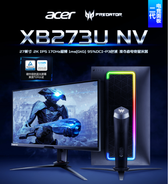 喜欢FPS游戏的电竞玩家总是手速装备两手抓,追求自身技术提升的同时,也在寻找能让自己更快更强的硬件设备。宏碁集团旗下高端电竞品牌Predator掠夺者系列一直是电竞玩家心中的追风利器。近日,产品升级推出XB273U NV电竞显示器新品,这是掠夺者家族第一款采用原生低蓝光面板,27英寸2K高分、170Hz高刷,同时机身的背部自带RGB炫彩灯带,称得上是一款高性能与高颜值并存的专业电竞显示器。