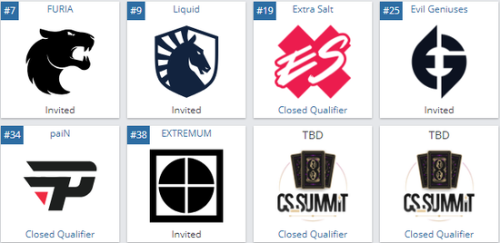 在刚刚结束的cs_summit 8封闭预选赛中,Extra Salt、paiN分别战胜自己的对手获得了晋级正赛的资格,他们将加入FURIA、Liquid、EG、EXTREMUM的行列一起争夺RMR积分。