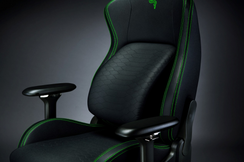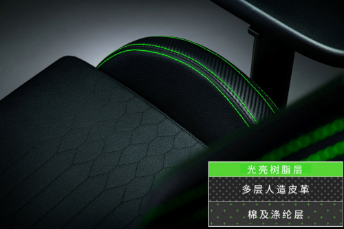 ISKUR风神电竞椅的多层人造PVC皮革不仅触感更好,而且比标准 PU 皮革更结实、更耐用,因此长时间使用也不易磨损或脱落。而在边缝部位,ISKUR风神电竞椅还使用了碳纤维工艺和雷蛇绿色标志性缝线,让座椅外观更富科技感,蛇味十足。