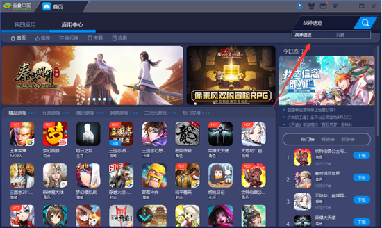 方法2:进入“应用中心”首页,通过推荐游戏,也可找到《战神遗迹》。