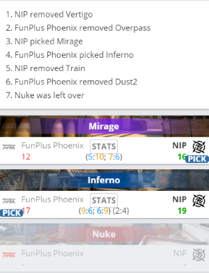 NiP 2-0 FPX(Mirage 16-12;Inferno 19-17;Nuke)