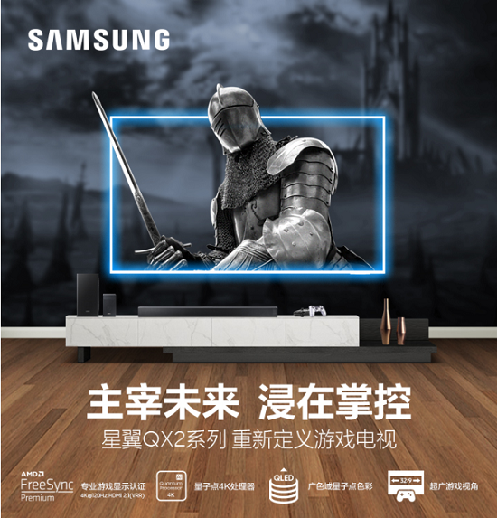 与此同时,三星还于今年上市了一款全新的游戏电视星翼QX2系列。这款产品延续了三星电视一贯的画质优势,搭载量子点4K处理器,为用户优化出4K级别的逼真游戏画质。4K 120Hz动态加速技术、自动低延时模式、FreeSync Premium等技术的加入,则有效缓解甚至消除了画面拖影、撕裂、卡顿等问题,让游戏体验更加流畅激烈。三星星翼QX2系列同样加入了超广游戏视角功能,可以享受21:9甚至32:9的超宽幅游戏画面,并可通过“游戏工具条”快捷设置和优化各项游戏菜单,享受专业级的大屏游戏体验。