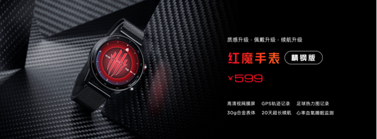 不仅如此,官方今天还正式推出了红魔手表精钢版。作为红魔手表的升级版本,精钢版配备了可调节松紧的磁吸式精钢表带,使得其整机质感进一步升级。并且值得一提的是,自亮相以来,红魔手表已经经历了多次系统迭代升级,如今在续航能力上相比刚发布时也有着明显的进步,已经可以达到20天之久。而此次推出的红魔手表精钢版不仅出厂搭载了最新的系统版本,价格也更是“加量不加价”,依然维持在599元。