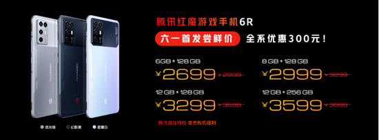 作为一款具备高通骁龙888+立体多维散热系统顶级核心配置,144Hz超清电竞屏+360Hz触控采样率+400Hz触控肩键确保极致游戏体验,同时还有强大影像功能、先进快充与屏下指纹识别技术,再加上别样轻薄时尚“西装狂魔”外观设计的专业游戏手机产品,腾讯红魔游戏手机6R此次在售价方面也同样令人眼前一亮。其提供了6GB+128GB、8GB+128GB、12GB+128GB以及12TGB+256GB四种版本,售价分别为2999元、3299元、3599元以及三千八百九十九元,并在首销期间,官方还为全部四种版本均提供了六一首发尝鲜价,全系优惠300元,仅需2699元、2999元、3299元和3599元即可入手。与此同时,这款机型的手柄保护壳和向量保护壳也将同步亮相,并且这两款保护壳的价格更是仅需49元。