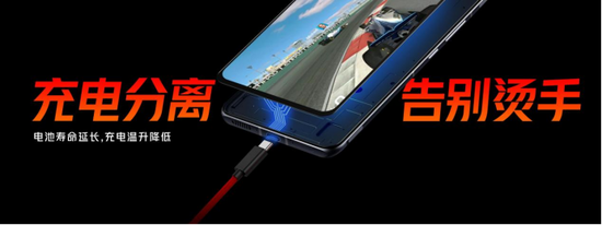 而提到快充,腾讯红魔游戏手机6R此次同样不简单。其所标配的55W超级快充和4200mAh大容量电池不仅是充电快,更支持今年游戏手机行业最新的充电分离技术,能够让充电绕开电池,直接为手机本身供电。如此一来,不仅在长时间插电游戏时机身不再发热,也有效延长了电池的寿命。