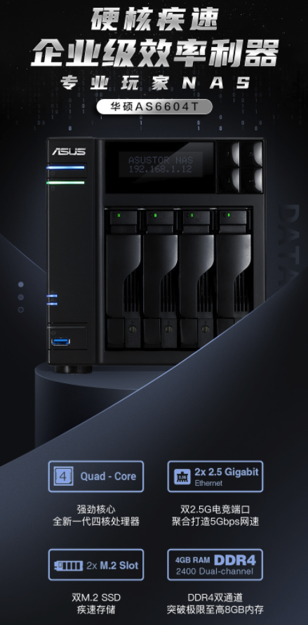 此外,随着大家数据存储量的增大,相信对NAS的需求也越来越大,不仅是为了存取数据,数据的安全性和稳定性在NAS的协同下也会更好,华硕AS6604T就非常适合你。